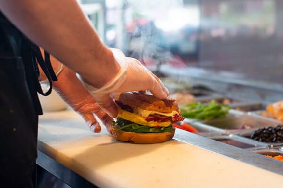 Start with fresh bread from Rising Star Bakery, including a Gluten Free option, or choose a wrap or bun. Next is the meat of your choice, or even a combination of meats, or double meats, whatever your taste buds are craving. Then choose your cheese, a sauce or two, and finish with all the fresh veggies you want. And that is why it is dubbed “Tall as the Barn”.