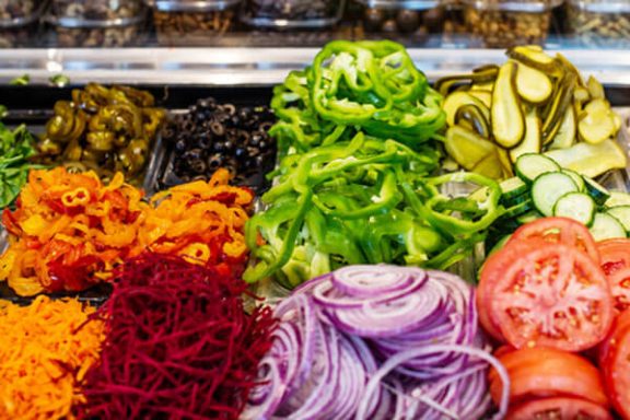Fresh breads, savoury sauces, smoked meats, and tons of veggies
